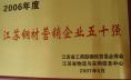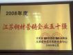 |  | 江蘇鋼材營銷企業(yè)五十強(qiáng) | | 證明單位:江蘇省工商聯(lián)鋼鐵貿(mào)易商會(huì) | | 證明日期:2007-08 | 點(diǎn)擊查看大圖 |