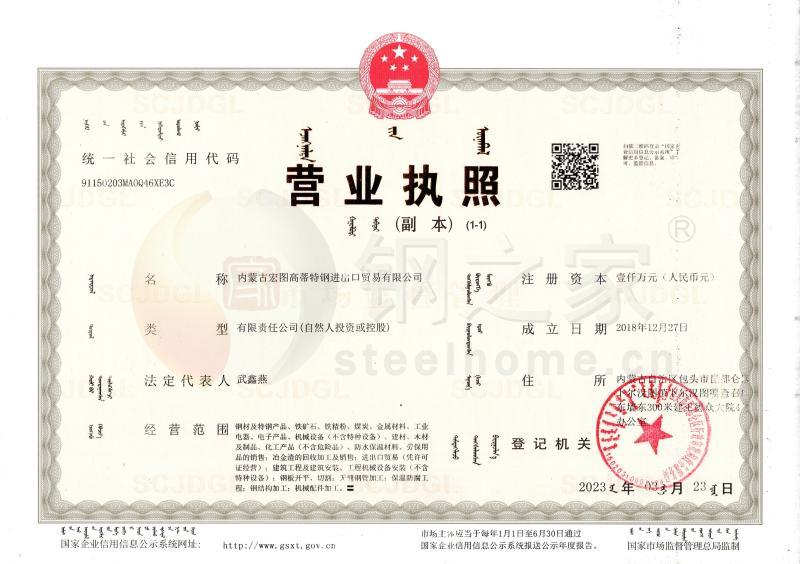 內(nèi)蒙古宏圖高蒂特鋼進(jìn)出口貿(mào)易有限公司
