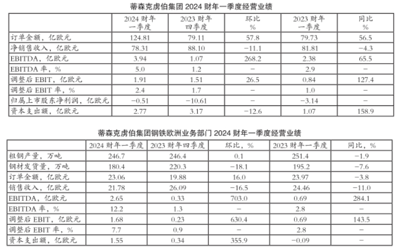 2024財(cái)年一季度鋼鐵歐洲業(yè)務(wù)部門(mén)經(jīng)營(yíng)業(yè)績(jī)