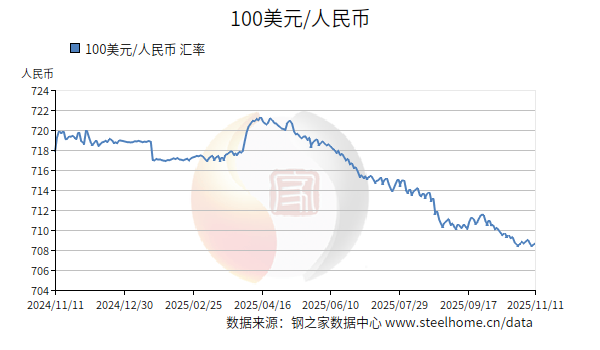 | 100美元/人民幣 | 708.66 | 0.1 | -0.01 | -10.23 | 1.44 |