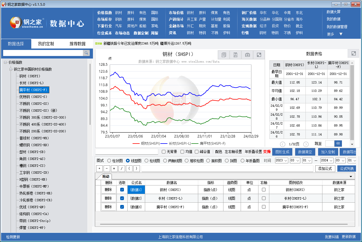 數(shù)據(jù)中心客戶端全面對接鋼之家數(shù)據(jù)庫,可根據(jù)客戶分析研判和交易決策的需求實(shí)現(xiàn)生成定制化,個(gè)性化數(shù)據(jù)圖表。與此同時(shí),鋼之家數(shù)據(jù)研究院可為客戶提供專業(yè)數(shù)據(jù)平臺(tái)搭建服務(wù)和數(shù)據(jù)端口服務(wù)。