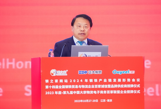 2023年10月27-29日,由鋼之家網站主辦,邯鄲正大制管集團股份有限公司、歐冶云商股份有限公司冠名聯辦,上海期貨交易所、南京鋼鐵股份有限公司、成渝釩鈦科技有限公司、盤古云鏈(天津)數字科技有限公司、廈門建發(fā)金屬有限公司、上海鋼鐵俠電子商務有限公司、廣西柳州鋼鐵集團有限公司、江蘇省鑌鑫鋼鐵集團有限公司聯辦,河南天元清潔能源有限公司、天津友發(fā)鋼管集團股份有限公司、南京鋼鋒實業(yè)有限公司、中鐵物資集團有限公司協辦,大連商品交易所、中國大宗物資網特別支持,中鋁國際貿易集團有限公司、寧夏鋼鐵(集團)有限責任公司、安徽長江鋼鐵股份有限公司、春煦鋼鐵貿易(上海)有限公司、申銀萬國期貨有限公司、永安期貨股份有限公司、山西黎城粉末冶金有限責任公司、承德信通首承科技有限責任公司、靖江太和港務有限公司、安徽鋼之家、安徽鋼之家供應鏈、重慶鋼之家、易鋼投資支持的《鋼之家網站2024年鋼鐵產業(yè)鏈發(fā)展形勢會議》在南京召開。在本屆會議期間,舉辦了《鋼鐵供應鏈模式創(chuàng)新》、《鋼之家網站2023年秋季報告會》、《產業(yè)金融化與風險管理》、《鋼之家期現實戰(zhàn)心得交流會》、《第二十六屆鋼鐵企業(yè)市場信息聯席會議暨第九屆鋼鐵生態(tài)圈市場信息大會》、《原燃料市場形勢與結構性問題研究》和《鋼材:低碳環(huán)?!そY構調整·模式創(chuàng)新》等七場專題論壇。來自國內外包括120多家鋼廠和80多家原燃料企業(yè)在內的產業(yè)鏈企業(yè)及相關機構、媒體等700多家單位的900多名嘉賓參加了本屆會議。