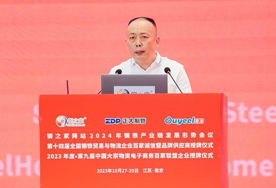 2023年10月27-29日,由鋼之家網(wǎng)站主辦,邯鄲正大制管集團(tuán)股份有限公司、歐冶云商股份有限公司冠名聯(lián)辦,上海期貨交易所、南京鋼鐵股份有限公司、成渝釩鈦科技有限公司、盤古云鏈(天津)數(shù)字科技有限公司、廈門建發(fā)金屬有限公司、上海鋼鐵俠電子商務(wù)有限公司、廣西柳州鋼鐵集團(tuán)有限公司、江蘇省鑌鑫鋼鐵集團(tuán)有限公司聯(lián)辦,河南天元清潔能源有限公司、天津友發(fā)鋼管集團(tuán)股份有限公司、南京鋼鋒實(shí)業(yè)有限公司、中鐵物資集團(tuán)有限公司協(xié)辦,大連商品交易所、中國大宗物資網(wǎng)特別支持,中鋁國際貿(mào)易集團(tuán)有限公司、寧夏鋼鐵(集團(tuán))有限責(zé)任公司、安徽長江鋼鐵股份有限公司、春煦鋼鐵貿(mào)易(上海)有限公司、申銀萬國期貨有限公司、永安期貨股份有限公司、山西黎城粉末冶金有限責(zé)任公司、承德信通首承科技有限責(zé)任公司、靖江太和港務(wù)有限公司、安徽鋼之家、安徽鋼之家供應(yīng)鏈、重慶鋼之家、易鋼投資支持的《鋼之家網(wǎng)站2024年鋼鐵產(chǎn)業(yè)鏈發(fā)展形勢會議》在南京召開。在本屆會議期間,舉辦了《鋼鐵供應(yīng)鏈模式創(chuàng)新》、《鋼之家網(wǎng)站2023年秋季報告會》、《產(chǎn)業(yè)金融化與風(fēng)險管理》、《鋼之家期現(xiàn)實(shí)戰(zhàn)心得交流會》、《第二十六屆鋼鐵企業(yè)市場信息聯(lián)席會議暨第九屆鋼鐵生態(tài)圈市場信息大會》、《原燃料市場形勢與結(jié)構(gòu)性問題研究》和《鋼材:低碳環(huán)保·結(jié)構(gòu)調(diào)整·模式創(chuàng)新》等七場專題論壇。來自國內(nèi)外包括120多家鋼廠和80多家原燃料企業(yè)在內(nèi)的產(chǎn)業(yè)鏈企業(yè)及相關(guān)機(jī)構(gòu)、媒體等700多家單位的900多名嘉賓參加了本屆會議。