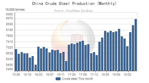 | Large-and-medium-sized steelmakers' production, Global crude steel production; |